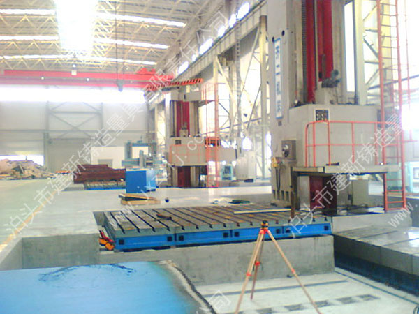 建新鑄造生產的落地鏜銑床工作平臺主要用于地鏜床、銑床、鏜銑床配套,機床加工工作平面使用,上面可加工圓孔、長孔以及T型槽,并可配有大型T型槽方箱、T型槽彎板等工裝。用來固定工件,以及清理加工時產生的鐵屑。具有精度高、安裝方便、可裝配面積大、維修方便等特點,可大大提高機床加工精度。同時,廣泛應用于機床、機械加工、機械制造、造船、航天、航空、汽車、高鐵、風電及生產各種機械設備的行業領域。